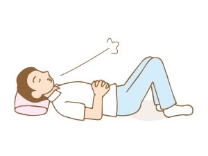 まずは腹式呼吸ですね。